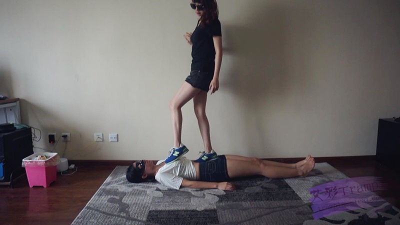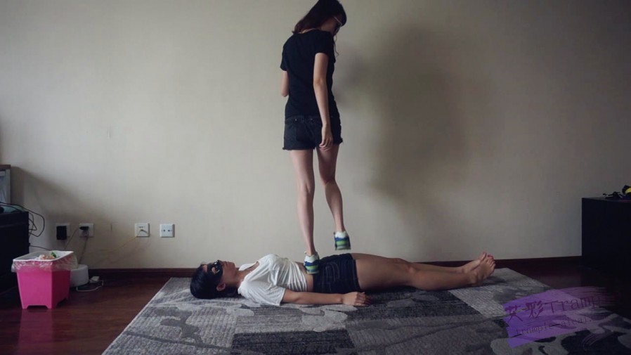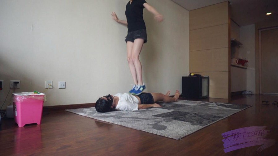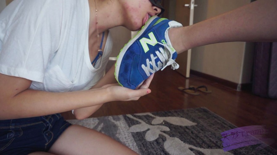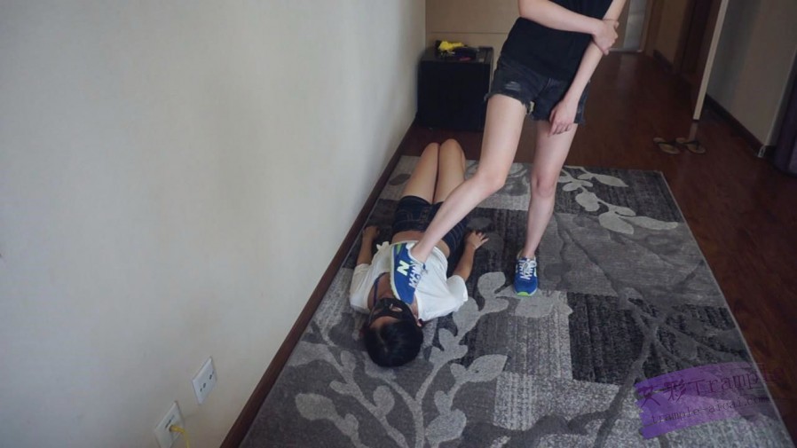 『小妮女女』白袜脏运动鞋践踏女毯子