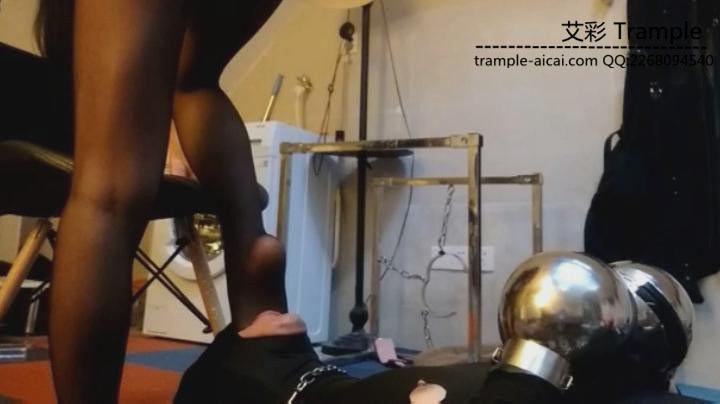 『艾彩女女』黑丝高跟鞋凉鞋调教女奴,虐舌头+胸部