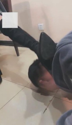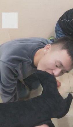 仔仔的巨长腿暴力脚耳光和脸部畸形碾压,一一主子暴力固定住靶子