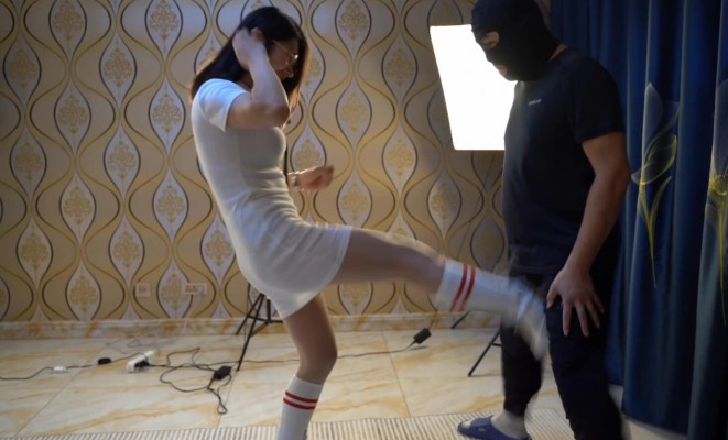【欧洲格斗剧情系列】长筒皮靴姐妹花暴力踢打蒙面匪徒,双人爆踢 O-171023-2