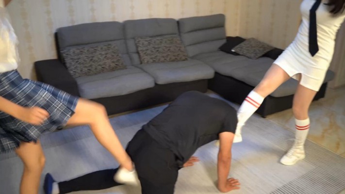 【不良女学生】小女生双人踩踏娱乐玩耍