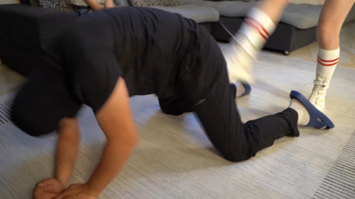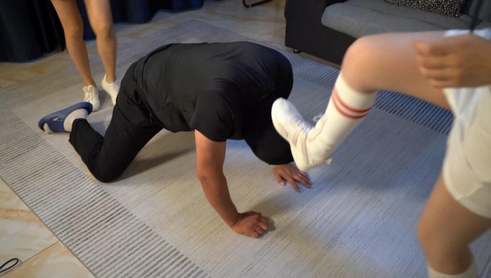 【子怡】双人踩踏贱狗强迫舔鞋底