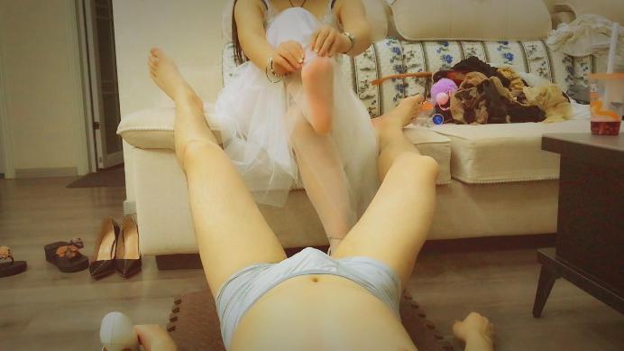 婚纱、白丝、白高跟,电気、按摩、闻秀脚