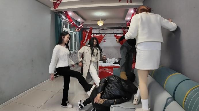 几个校园太妹找到了一个大冤种弱逼男的进行无理由群殴,拳打脚踢,暴力踢踹耳光踩踏,分分钟给你踩出淤血踹成脑震荡,全程无尿点高能超级暴力..